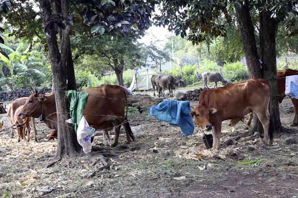 | Đàn gia súc của gia đình ông Ây Chem đang dần kiệt quệ vì dịch bệnh. |
