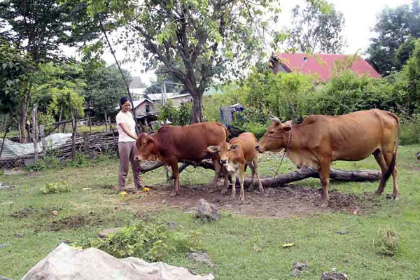 | Chị Hrui Niê lo lắng trước tình trạng dịch bệnh tấn công đàn bò. |