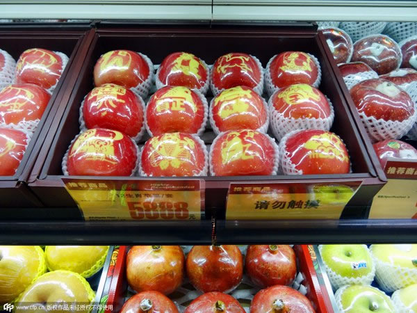 12 quả táo này có giá vượt qua cả iPhone6 của Apple. Vào đêm Giáng sinh trọn bộ “Táo Hòa bình” này được bán với giá đáng kinh ngạc 5.888 NDT (950USD) tại một siêu thị ở Nam Kinh, tỉnh Giang Tô, Trung Quốc. 12 quả táo có hình 12 con giáp. Ji Shiling, chủ cửa hàng hoa quả, cho biết mọi người mua “Táo Hòa bình” để làm quà tặng.