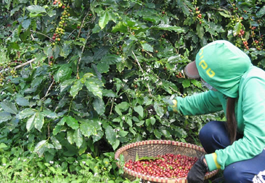 Nông dân thu hoạch cà-phê tại xã Trạm Hành.