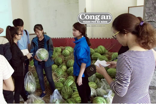 Tại điểm bán dưa 575-Tôn Đức Thắng, Trần Thị Mỹ Đào, sinh viên năm thứ nhất cùng hơn 10 đoàn viên khác cũng hăng hái chào khách qua đường mua ủng hộ. Mỗi giờ qua đi, hàng chục quả dưa cũng được người dân Đà Nẵng trích hầu bao mua ủng hộ.