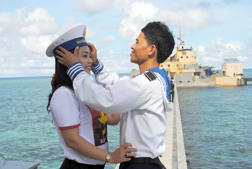 | Phút giây đầy tình cảm giữa lính đảo và một thành viên nữ. |