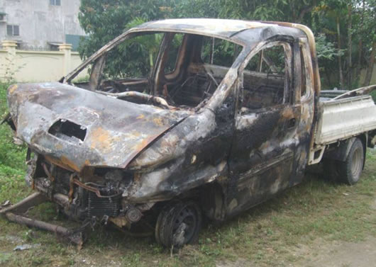 Chiếc xe bán tải bị cháy rụi sau tai nạn. |