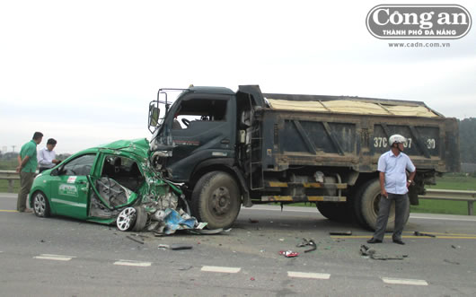 NGHỆ AN- 8 giờ 45 ngày 13-10, xe taxi BKS 37A-176.16 (chưa rõ danh tính tài xế) lưu thông trên đường tránh TP Vinh, khi đến đoạn qua địa phận xã Hưng Lợi (H. Hưng Nguyên) thì bị xe tải BKS 37C-007.30 chạy cùng chiều tông vào. Lực tông đã đẩy xe taxi va vào xe container BKS 29C-495.94 kéo rơ-moóc BKS 29R-021.00 lưu thông hướng ngược lại. Hậu quả, 4 người bị thương nặng, xe taxi và xe tải hư hỏng nặng.