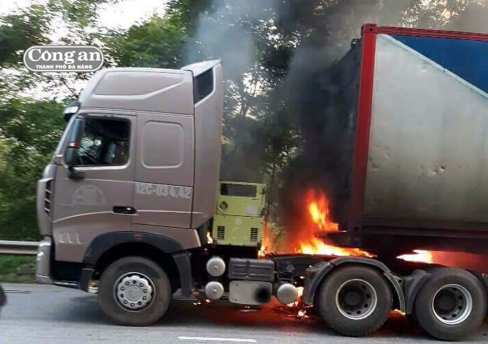 (Cadn.com.vn) - QUẢNG BÌNH- Khoảng 6 giờ ngày 6-6, tài xế Vũ Văn Điệt (34 tuổi, quê Nam Định) điều khiển ô-tô đầu kéo BKS 12C-03442 kéo rơ-moóc BKS 12R-003.54 do lưu thông đến đoạn dốc Bãi Dinh (xã Dân Hóa, H. Minh Hóa) thì bị bốc cháy. Nhận được tin báo, lực lượng chức năng và cả trăm người dân địa phương dùng các phương tiện, dụng cụ chữa cháy đến cứu xe. Sau gần 30 phút, đám cháy trên xe đã bị dập tắt. Vụ hỏa hoạn làm cháy 4 lốp trước của ô-tô và một phần bên phải đầu kéo.