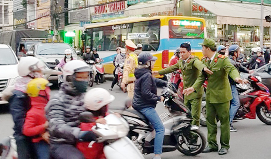 | CAP Hải Châu II thường xuyên giải quyết ùn tắc giao thông tại ngã tư Triệu Nữ Vương- Hùng Vương. |