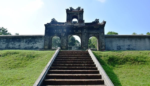 Cổng tam quan ở di tích Điện Voi Ré. |