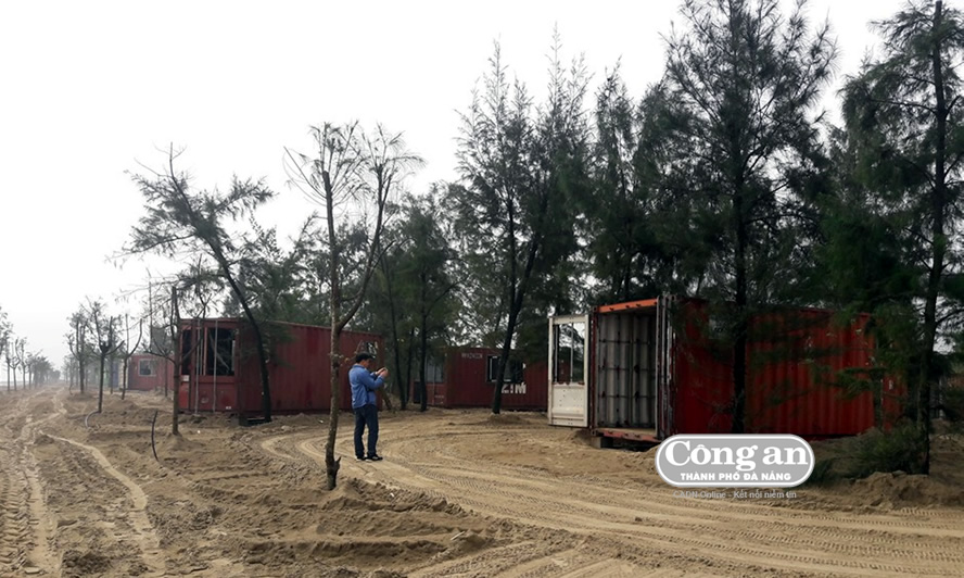 Theo ghi nhận tại hiện trường, dưới tán rừng phòng hộ, hàng chục công nhân đang tiến hành lắp đặt và hoàn thiện hệ thống các "nhà nghỉ" container. Những chiếc container cũ kỹ đã và đang trở thành một căn phòng sang trọng, đẹp đẽ với đầy đủ tiện nghi như: điều hòa, nóng lạnh, khu vệ sinh, giường ngủ... Đâu đó vẫn còn một số ít các gốc cây bị đốn hạ, nằm chỏng chơ cạnh các thùng container. Tại một hố cát ngay bờ biển có rất nhiều gốc cây được "phi tang" khá kín đáo. Một cán bộ kỹ thuật của dự án giải thích: "Không có chuyện chặt cây. Các gốc cây đó là... từ ngoài biển trôi dạt vào".
