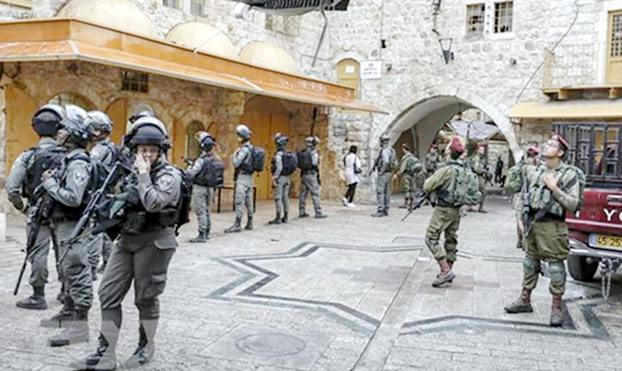 Lực lượng an ninh Israel tuần tra tại thành phố Hebron, Bờ Tây. Ảnh: AFP
