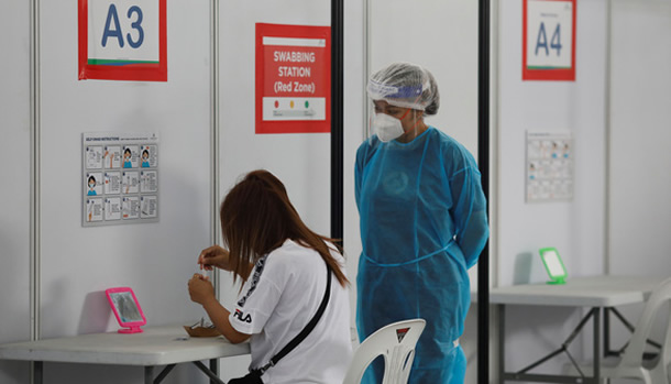 Nhân viên y tế giám sát và hướng dẫn người dân tự xét nghiệm nhanh COVID-19 tại Singapore ngày 28-11. Ảnh: Reuters |