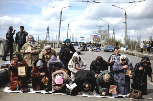 | Người dân Ukraine cầu nguyện cho hòa bình. Ảnh: AP |