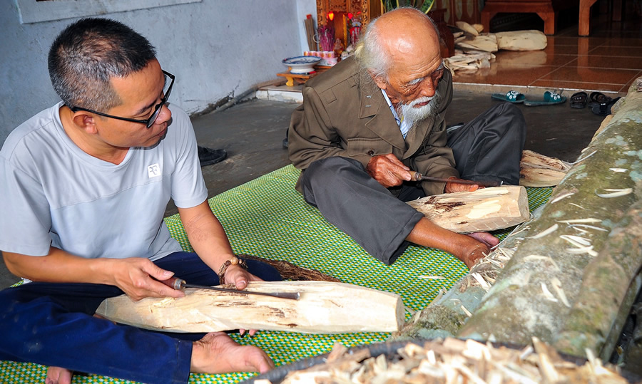 Tiếp bước những người thợ lão luyện như cụ Ánh, em Nguyễn Văn Tuấn (2000) là một trong những người trẻ tuổi quyết tâm học và làm giàu từ nghề chế tác dó trầm. “Em học nghề từ cha rồi sau đó xin vào làm ở một cơ sở sản xuất trầm trong xã. Ban đầu, mình chỉ được đi chặt cây, đẽo phá, dần dần em đã thuần thục công đoạn xổ phá, ép sát và đang học thêm kỹ năng xổ gạn. Vì đây là nghề truyền thống từ cha ông nên em sẽ cố gắng theo đuổi để học và giữ lấy nghề” - Tuấn chia sẻ.