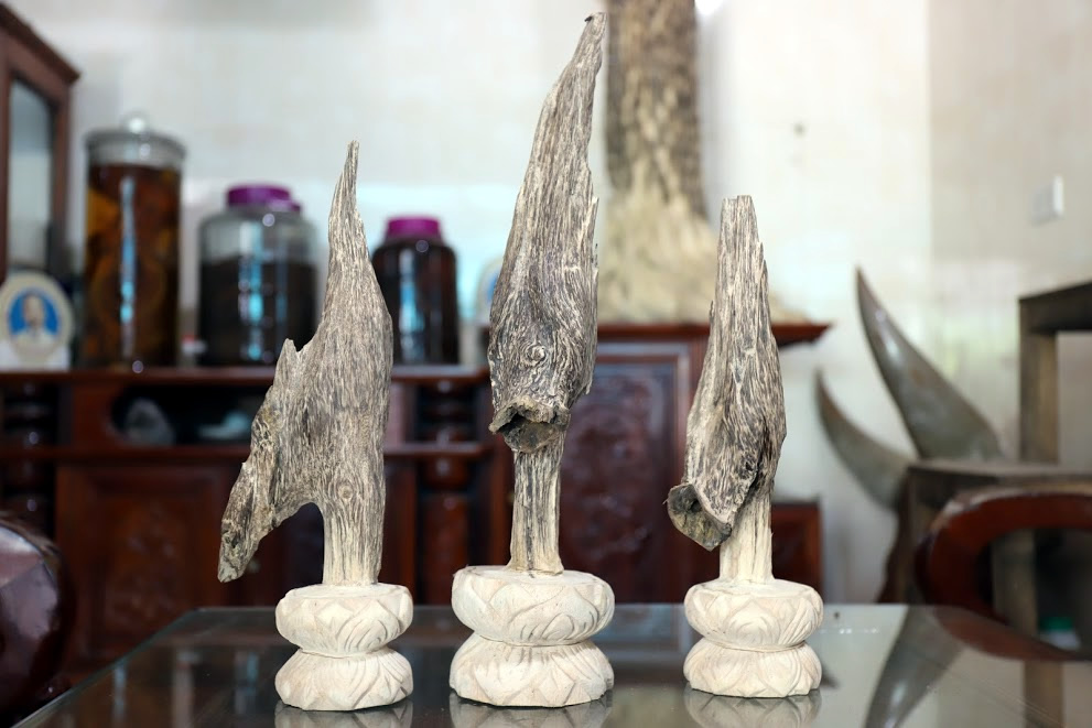 Một số sản phẩm mỹ nghệ chế tác từ cây dó trầm. |
