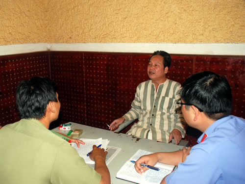 Đinh Đăng Định đang khai báo sự việc với cơ quan An ninh. |