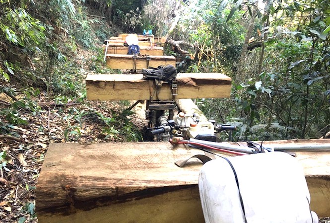 Xe máy độ chế mà các đối tượng sử dụng để vận chuyển lâm sản. |
