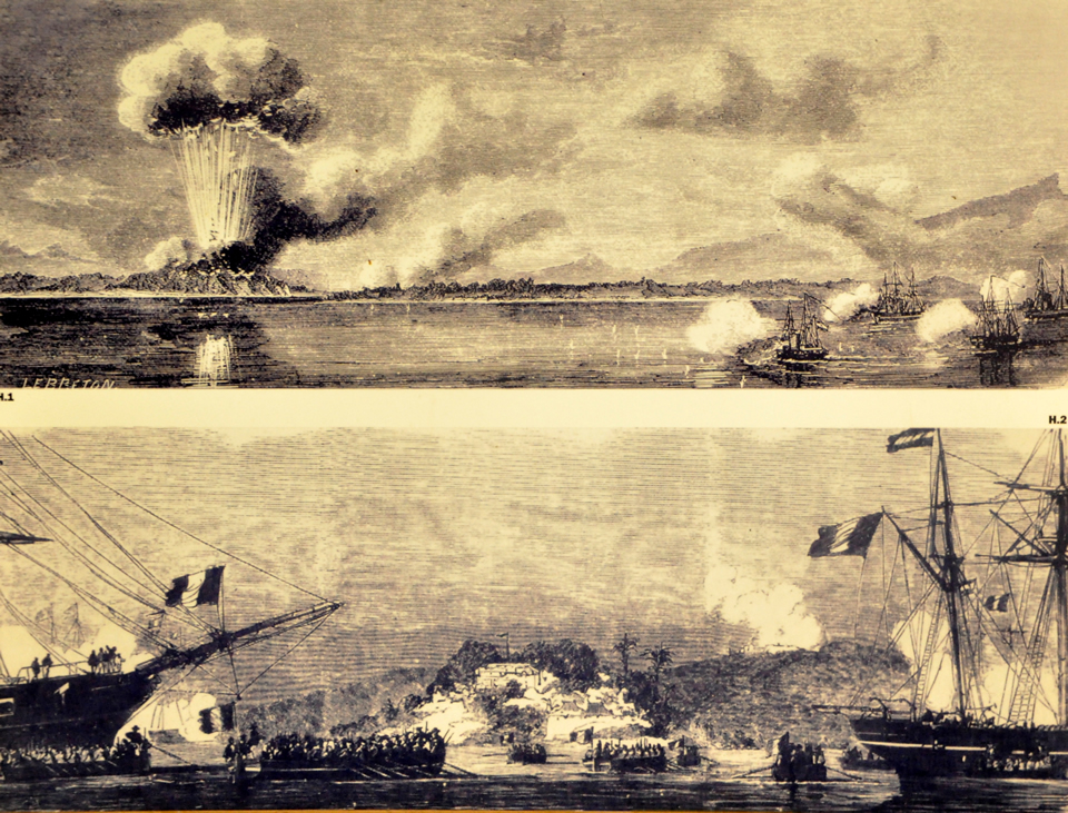 Hình ảnh Liên quân Pháp - Tây Ban Nha tấn công vào Đà Nẵng qua các bức ký họa được lưu giữ tại Bảo tàng Đà Nẵng. |