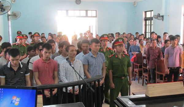 Quang cảnh phiên xét xử 18 trai làng hỗn chiến trong đêm. |