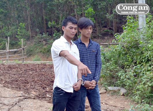 Phạm Văn Chiều và Phạm Văn Hà tại hiện trường. |
