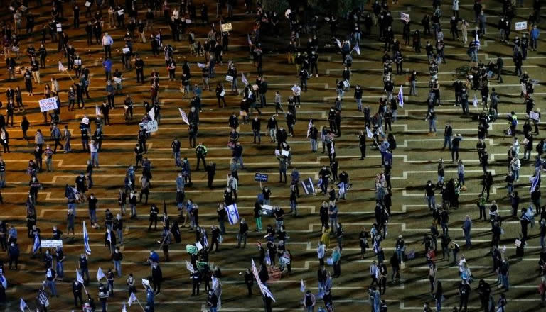 Tối 19-4, khoảng 2.000 người biểu tình tập trung tại quảng trường trung tâm thành phố Tel Aviv nhằm phản đối tình trạng bế tắc không thành lập được chính phủ sau ba lần bầu cử ở nước này.