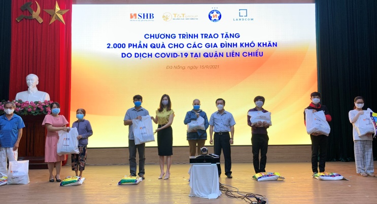 Đây là số phần quà được Ngân hàng TMCP Sài Gòn – Hà Nội, Tập đoàn T&T group, Cty Cổ phần Bóng đá Đà Nẵng và Cty CP Landcom tiến hành trao cho người dân có hoàn cảnh khó khăn tại quận Liên Chiểu, TP Đà Nẵng ngày 15-9. Mỗi suất quà trị giá 500.000 đồng (gồm gạo, dầu ăn, nước mắm và các nhu yếu phẩm). Các đơn vị tài trợ mong người dân bước đầu vượt qua khó khăn, phấn đấu cùng chính quyền quận và thành phố nhanh chóng đẩy lùi dịch bệnh, đưa Đà Nẵng trở lại trạng thái bình thường. Trước đó, Ngân hàng TMCP Sài Gòn – Hà Nội (SHB) và các doanh nghiệp cũng đã ủng hộ TP Đà Nẵng 2,9 tỷ đồng hỗ trợ công tác phòng chống dịch.