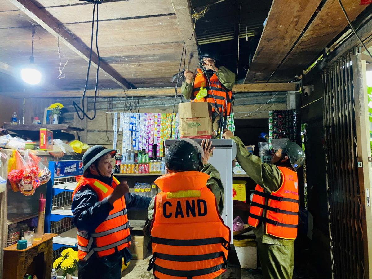 Trước tình hình nước lũ tiếp tục dâng cao, lực lượng Công an, Quân sự xã đã hỗ trợ sơ tán người và di dời tài sản của người dân đến nơi an toàn.