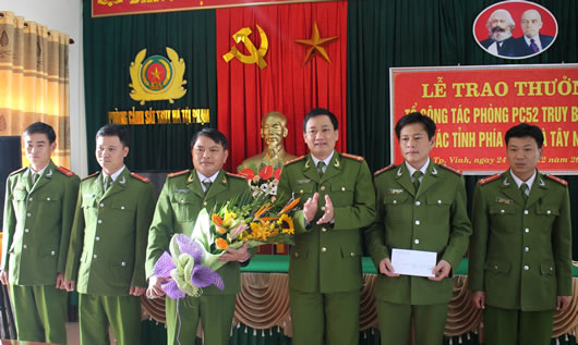 Đại tá Nguyễn Mạnh Hùng - Phó Giám đốc CA tỉnh Nghệ An chúc mừng Phòng CSTNTP |