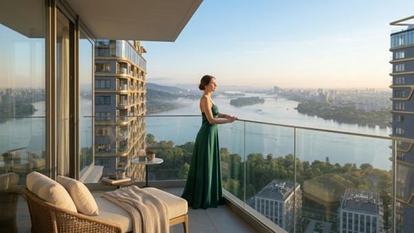 Ngày mới bắt đầu không phải bằng tiếng chuông báo thức hối hả, mà bằng những tia nắng đầu tiên len qua hệ thống kính hộp Low-E tràn viền, dịu dàng đánh thức mọi giác quan. Bước ra ban công khoáng đạt, cư dân Regal Complex đón nhận trọn vẹn bức tranh bình minh dát vàng trên biển Non Nước, một tầm nhìn “triệu đô” vô giá.