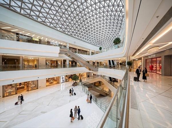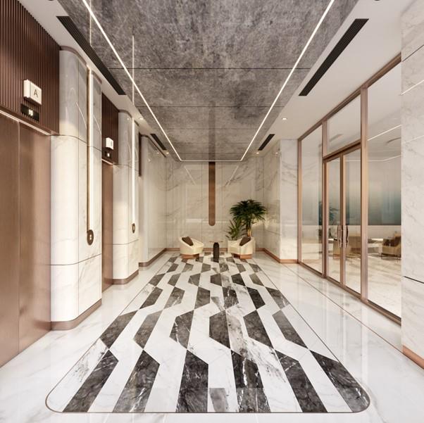 Tại sảnh đón, cảm giác choáng ngợp lập tức ùa đến từ không gian Lobby trần cao 10m, nơi ánh sáng và mùi hương được thiết kế chuẩn mực như các khách sạn 6 sao quốc tế. Ngay dưới chân tòa tháp, khối đế thương mại khổng lồ 8.000m² kiêu hãnh mở ra với sự góp mặt của 6 thương hiệu flagship toàn cầu.