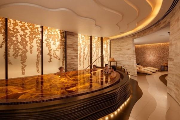 Tại 3 trung tâm Spa chuyên sâu, các chuyên gia hàng đầu mang đến những liệu trình massage mô sâu và thủy nhiệt trị liệu. Kế đó, bước vào phòng xông đá muối Himalaya triệu năm hay ngâm mình trong hồ Onsen chuẩn Nhật, bạn như lạc vào một ốc đảo thiêng liêng. Bầu không khí mặn mà, tinh khiết thanh lọc toàn bộ hệ hô hấp; mọi muộn phiền, mệt mỏi đều tan biến vào hư không, trả lại một tinh thần minh mẫn và cơ thể nhẹ bẫng.