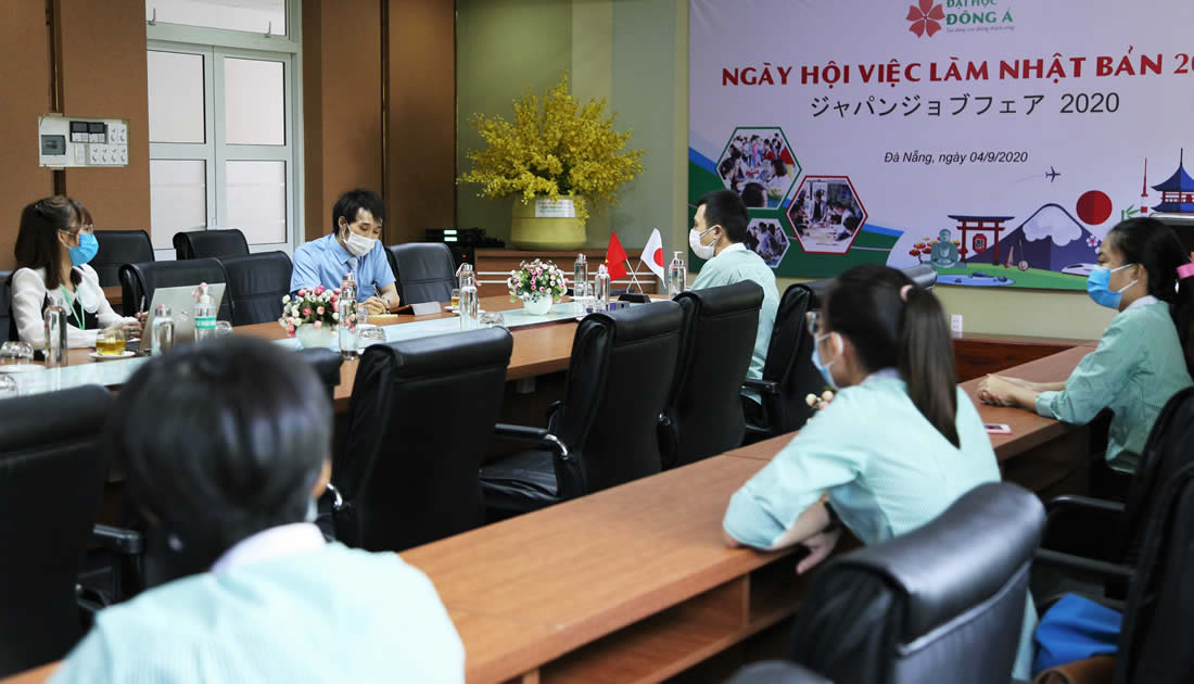 Ngày 4-9, 30 đối tác là các doanh nghiệp Nhật tham gia Ngày hội việc làm Nhật Bản 2020 tại Đại học Đông Á, Đà Nẵng. Chương trình năm này được tổ chức theo hình thức trực tuyến với rất nhiều "điểm cầu" được kết nối cùng lúc. Hơn 400 sinh viên ở 11 ngành đào tạo tại ĐH Đông Á đăng ký tham gia phỏng vấn tại phòng tuyển dụng trực tiếp hoặc trực tuyến.