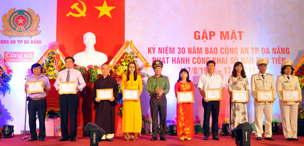 Nhân dịp này, Chủ tịch UBND thành phố tặng Cờ ghi nhận những đóng góp to lớn của Báo CATP Đà Nẵng trong 30 năm đồng hành cùng cuộc sống, góp phần xây dựng và phát triển thành phố; Giám đốc CATP tặng Giấy khen cho 6 cá nhân thuộc Báo CATP Đà Nẵng có thành tích xuất sắc trong công tác tuyên truyền, tặng Giấy khen cho 4 cá nhân có thành tích xuất sắc trong công tác phối hợp với Báo CATP Đà Nẵng thực hiện công tác từ thiện xã hội.