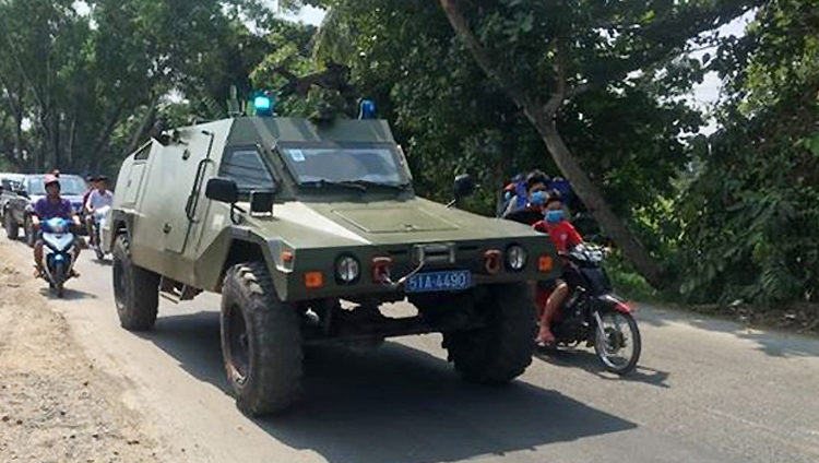 Xe bọc thép vào khu vực nghi là nơi lẩn trốn của Tuấn. Ảnh: Người dân cung cấp. |