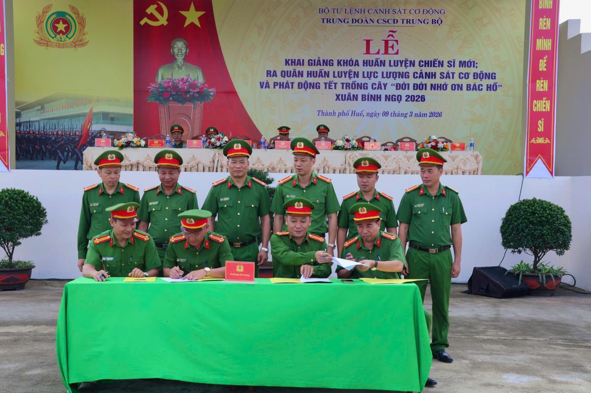 Đồng thời, Trung doàn Cảnh sát cơ động Trung bộ đã ra quân huấn luyện lực lượng Cảnh sát cơ động và phát động phong trào “Tết trồng cây đời đời nhớ ơn Bác Hồ” Xuân Bính Ngọ 2026 tại Tiểu đoàn 2 thuộc Trung đoàn Cảnh sát cơ động Trung bộ (phường Hương Thủy, TP. Huế). Tham dự và chỉ đạo buổi lễ có Đại tá Đỗ Ngọc Anh – Bí thư Đảng ủy, Trung đoàn trưởng Trung đoàn Cảnh sát cơ động Trung bộ cùng Ban Chỉ huy Trung đoàn, cấp ủy, chỉ huy các đơn vị trực thuộc và 616 chiến sĩ mới nhập ngũ, tham gia huấn luyện năm 2026 tại Trung đoàn.
