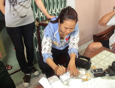 Hứa Thanh Trà ký vào tang vật ma túy bị bắt giữ qua khám xét.
