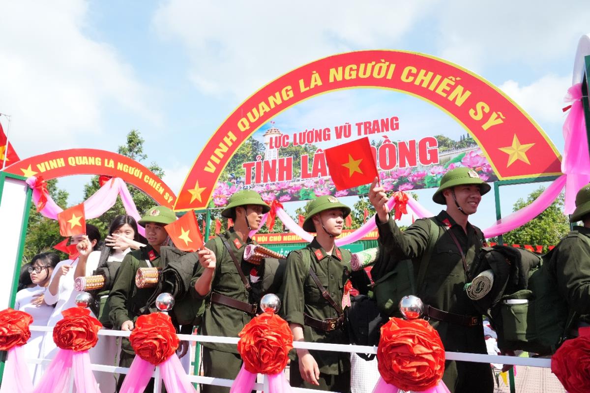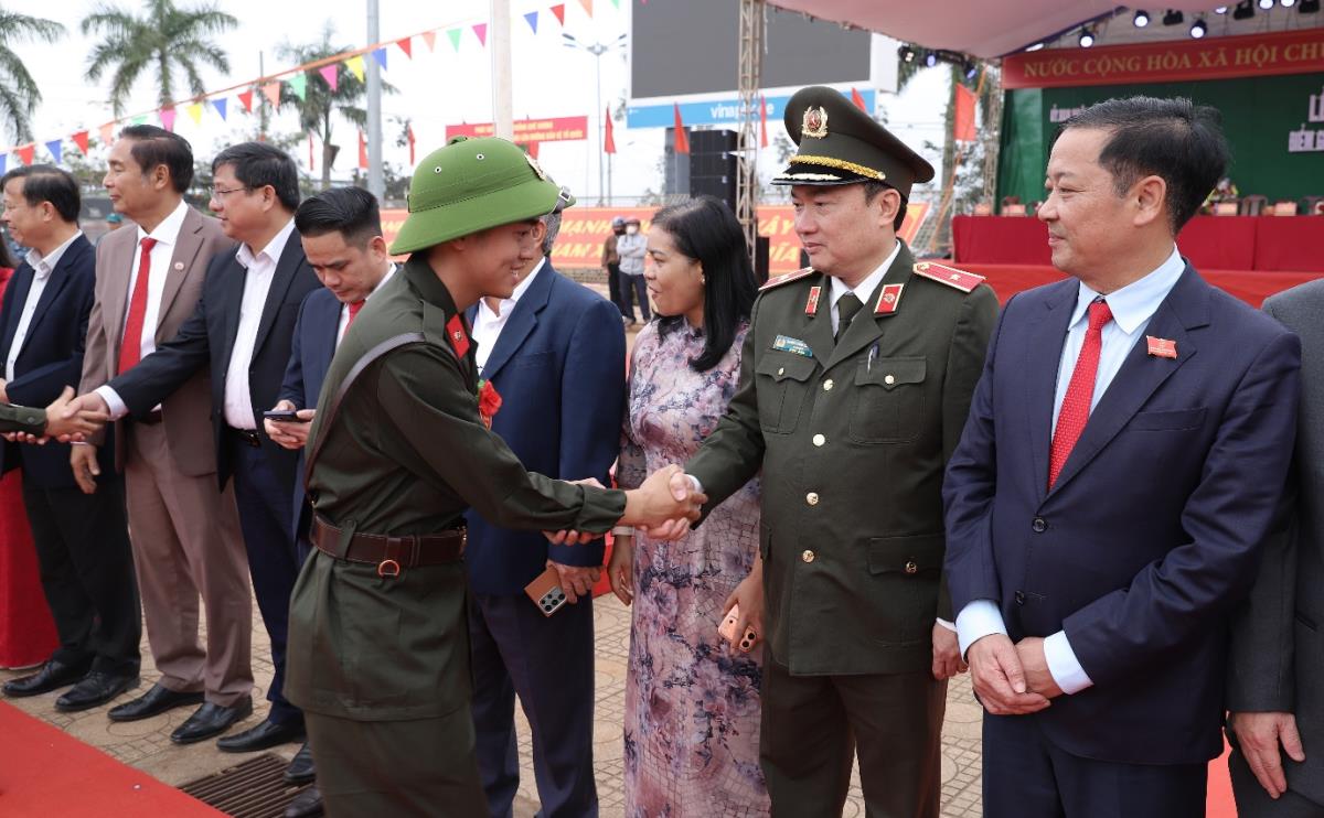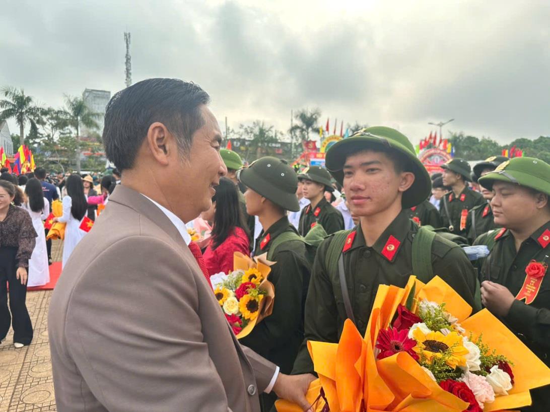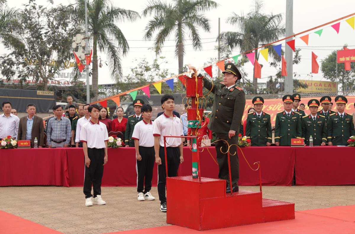 Tại buổi lễ, các đồng chí lãnh đạo đã thắp sáng ngọn lửa truyền thống và đánh trống lệnh giao quân, tặng hoa chúc mừng các thanh niên lên đường nhập ngũ và đề nghị các tân binh phát huy truyền thống gia đình, truyền thống quê hương anh hùng nhanh chóng hòa nhập với môi trường mới, luôn đoàn kết, thương yêu, giúp đỡ lẫn nhau; tích cực học tập, tu dưỡng và rèn luyện đạo đức cách mạng, phẩm chất Bộ đội Cụ Hồ và phẩm chất người chiến sỹ CAND vì nước quên thân vì dân phục vụ; luôn nỗ lực rèn luyện nâng cao trình độ, năng lực, hoàn thành tốt chức trách, nhiệm vụ được giao...