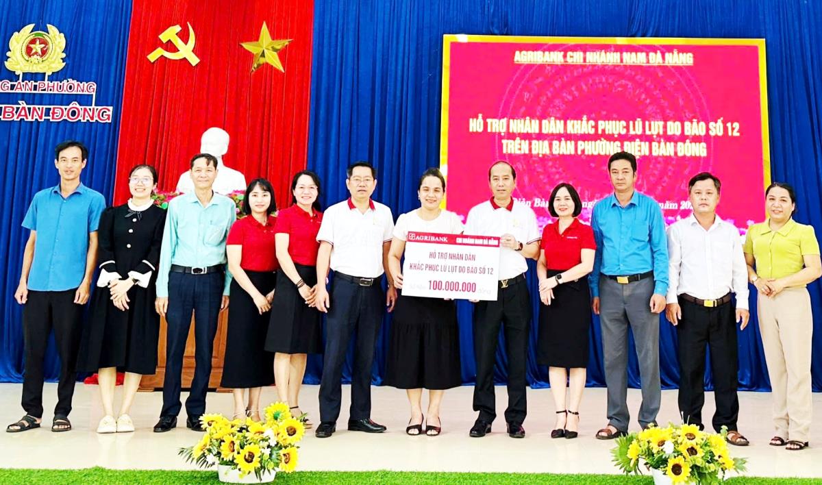 Nhân dịp này, thông qua UBMTTQVN phường Điện Bàn Đông, Agribank – Chi nhánh Nam Đà Nẵng đã ủng hộ 100 triệu đồng, góp phần cùng với Nhà nước và cộng đồng khắc phục hậu quả của bão lũ gây ra trên địa bàn phường Điện Bàn Đông. Theo thống kê sau đợt bão lũ xảy ra vào cuối tháng 10 và đầu tháng 11-2025 vừa qua, phường Điện Bàn Đông có 1 người chết, 3 nhà bị sạt lở, 135ha hoa màu bị hư hại, 12.000 con gia cầm bị chết và cuốn trôi, 17 khối phố bị ngập nước hoàn toàn với 4.621 hộ dân bị ảnh hưởng...