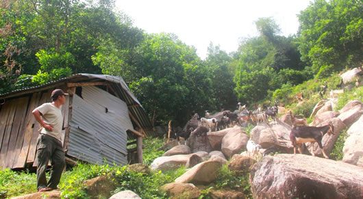 Liên tục bị trăn tấn công trên rừng Già, anh Nguyễn Kỳ phải đưa đàn dê của mình |