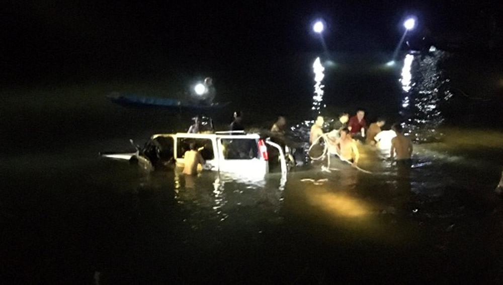 Ngay sau khi nhận thông tin vụ tai nạn, trắng đêm 4, rạng sáng ngày 5-10, lực lượng chức năng H. Thanh Chương và các đơn vị liên quan nhanh chóng có mặt tại hiện trường, cùng người dân tổ chức tìm kiếm các nạn nhân, trục vớt chiếc ô-tô gặp nạn. Đến khoảng 22 giờ 30 cùng ngày, lực lượng cứu hộ đã trục vớt thành công chiếc ô-tô, 3 người ngồi trên xe ô-tô được xác định đã tử vong. Cơ quan chức năng phải sử dụng câu vương, thuyền để rà tìm anh Hoàng Anh Tuấn. Đến khoảng 23 giờ, thi thể anh Tuấn được tìm thấy và trục vớt lên bờ.