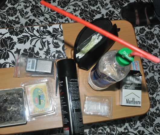Dụng cụ để sử dụng ma túy "đá" rất đơn giản, các "chân dài" cũng có thể tự chế ra để dùng... |