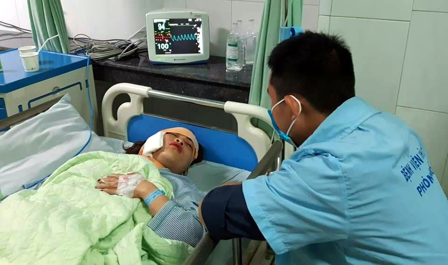 Nạn nhân Lê Thị Mai đang được điều trị tại bệnh viện. |
