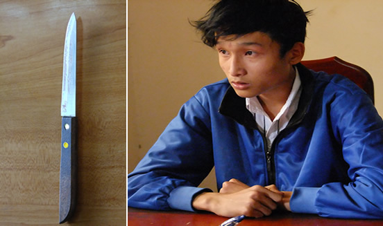 Nguyễn Thành Đạt cùng con dao gây án. |