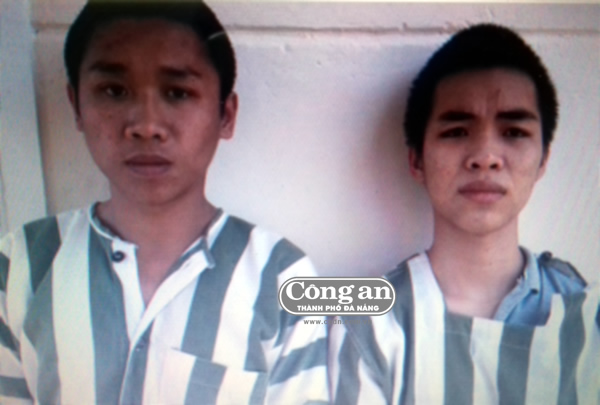 Hai bị cáo: Quân và Vũ tại tòa. |