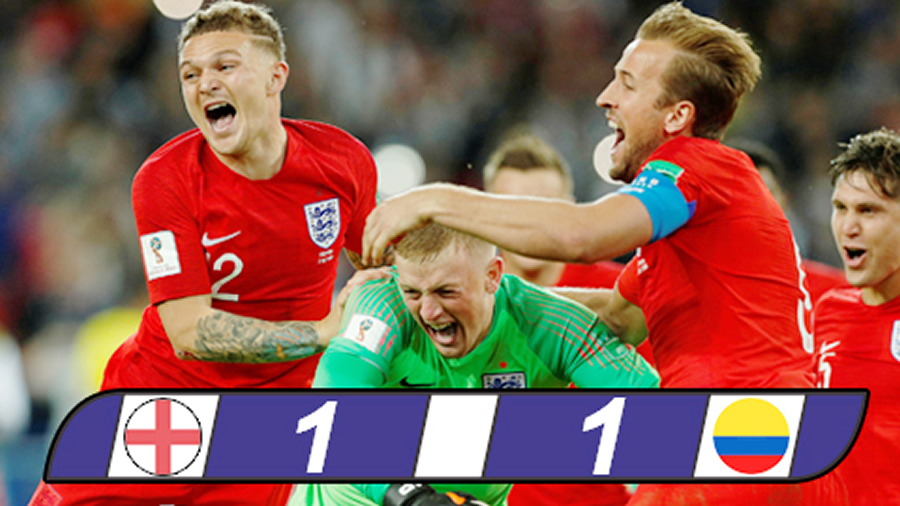 Trận đấu buộc phải tiến đến loạt luân lưu 11 mét và lịch sử nói rằng ĐT Anh chưa từng thắng ở loạt đấu súng tại các kỳ World Cup (1990, 1998 và 2006). Nhưng trong loạt sút cân não lần này, may mắn đã nghiêng về ĐT Anh với chiến thắng 4-3, qua đó Tam sư ghi tên mình vào vòng tứ kết.