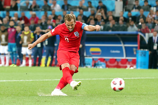 | Kane thực hiện thành công quả đá phạt 11m mở tỷ số trận đấu. |