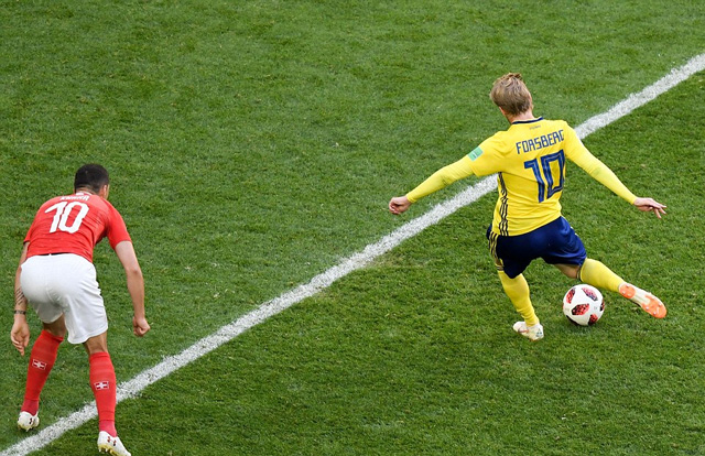 Sang hiệp 2, ĐT Thụy Sỹ đã dồn lên tấn công mạnh mẽ ngay sau tiếng còi khai cuộc, khi chưa tìm được bàn thắng thì họ phải trả giá đắt với pha dứt điểm từ ngoài vòng cấm của Forsberg, bóng đập chân hậu vệ Thụy Sỹ bay vào lưới, Thụy Điển có bàn mở tỉ số ở phút 66.