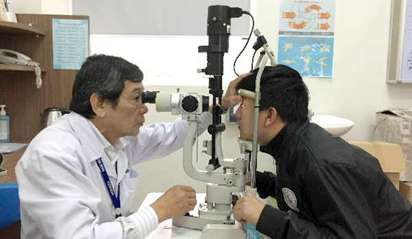 Đồng hồ đã điểm hơn 12 giờ nhưng vẫn thấy ông miệt mài khám bệnh cho bệnh nhân. Thấy chúng tôi có vẻ ngạc nhiên, ông cười, nói: “Trường hợp bệnh này (BN Phan Thị Rớt, 72 tuổi- P.V) nhà ở Hà Tĩnh nên mình phải khám cho xong để đầu giờ chiều còn kịp đón xe về nhà. Nếu mình không làm xuyên trưa thì BN và người thân phải ở trọ thêm một đêm tốn kém chi phí. BN này đã từng vào đây phẫu thuật, điều trị miễn phí hoàn toàn”, BS Trường mở đầu câu chuyện về cơ duyên đến với người mù.
