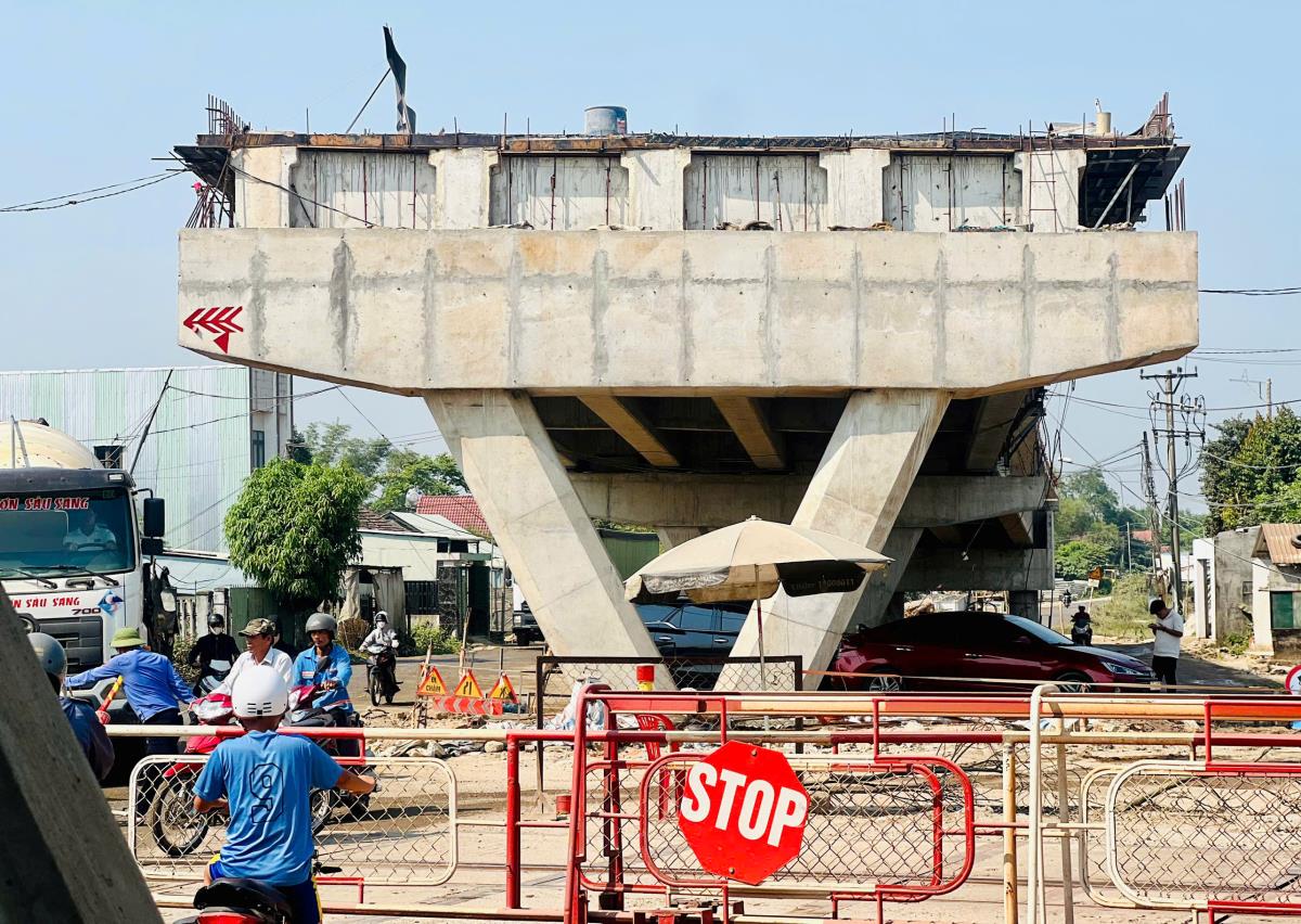Đại diện Ban Quản lý dự án đường bộ miền Trung (đơn vị được Cục Đường bộ Việt Nam giao nhiệm vụ quản lý dự án) cho biết công trình vẫn còn vướng 58 hộ, một số vị trí chưa hoàn thành di dời hệ thống đường điện, đường nước nên chỉ thi công được rãnh dọc, cạp mở rộng. Riêng đoạn cầu vượt đường sắt từ Km15+270 - Km15+820 còn vướng 23 hộ và hệ thống điện dẫn đến không thể thi công được các hạng mục như đường gom đảm bảo giao thông phía phải tuyến, tường chắn có cốt.