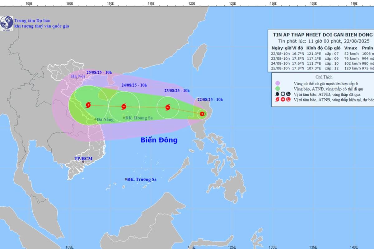 Sáng nay, 22/8, vùng áp thấp trên khu vực phía Đông đảo Luzon (Philippines) đã mạnh lên thành áp thấp nhiệt đới. Khoảng đêm nay, áp thấp nhiệt đới di chuyển vào Biển Đông, nhiều khả năng mạnh lên thành bão.