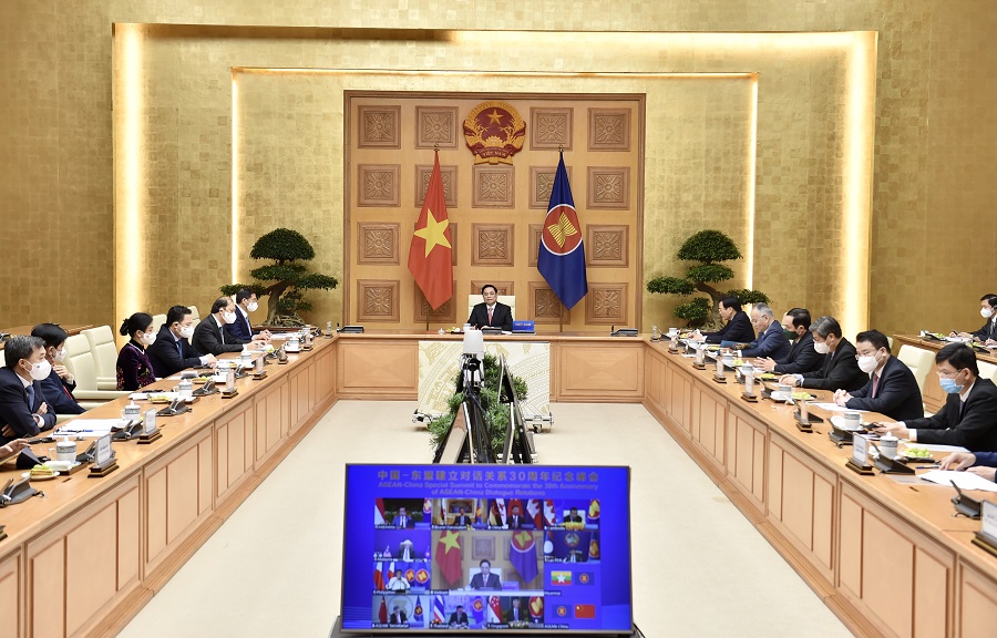 Sáng 22-11, Thủ tướng Chính phủ Phạm Minh Chính đã dẫn đầu đoàn Việt Nam, cùng các lãnh đạo ASEAN và Chủ tịch Trung Quốc Tập Cận Bình dự Hội nghị trực tuyến cấp cao đặc biệt kỷ niệm 30 năm quan hệ đối thoại ASEAN-Trung Quốc (1991-2021).