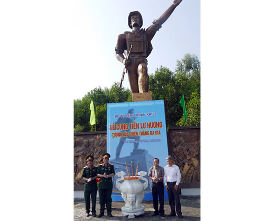 Bộ Tư lệnh Quân khu 5 cung tiến lư hương tượng đài Chiến thắng Ba Gia (4-2014) |